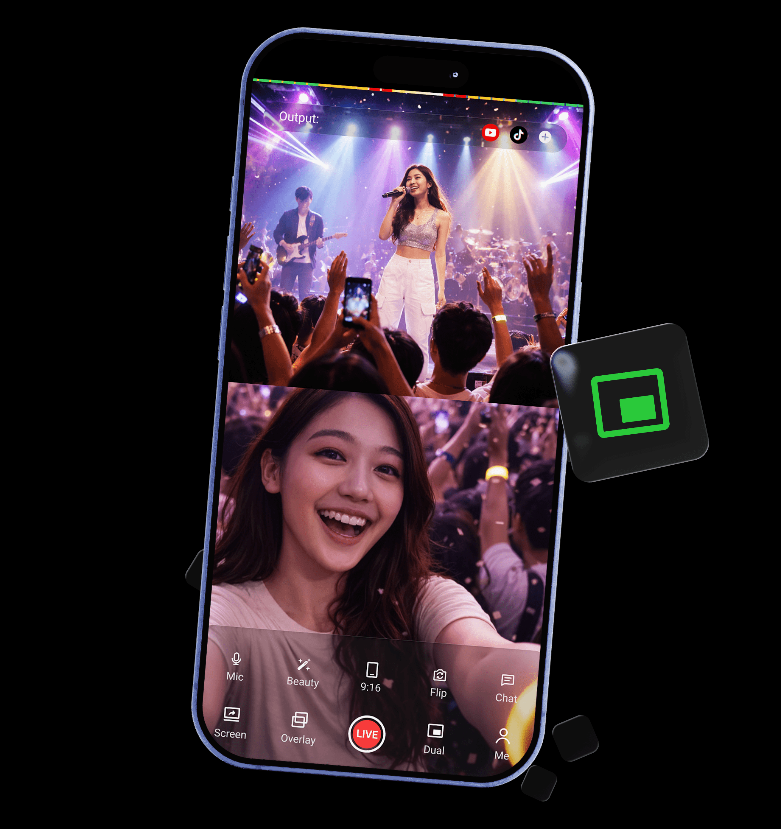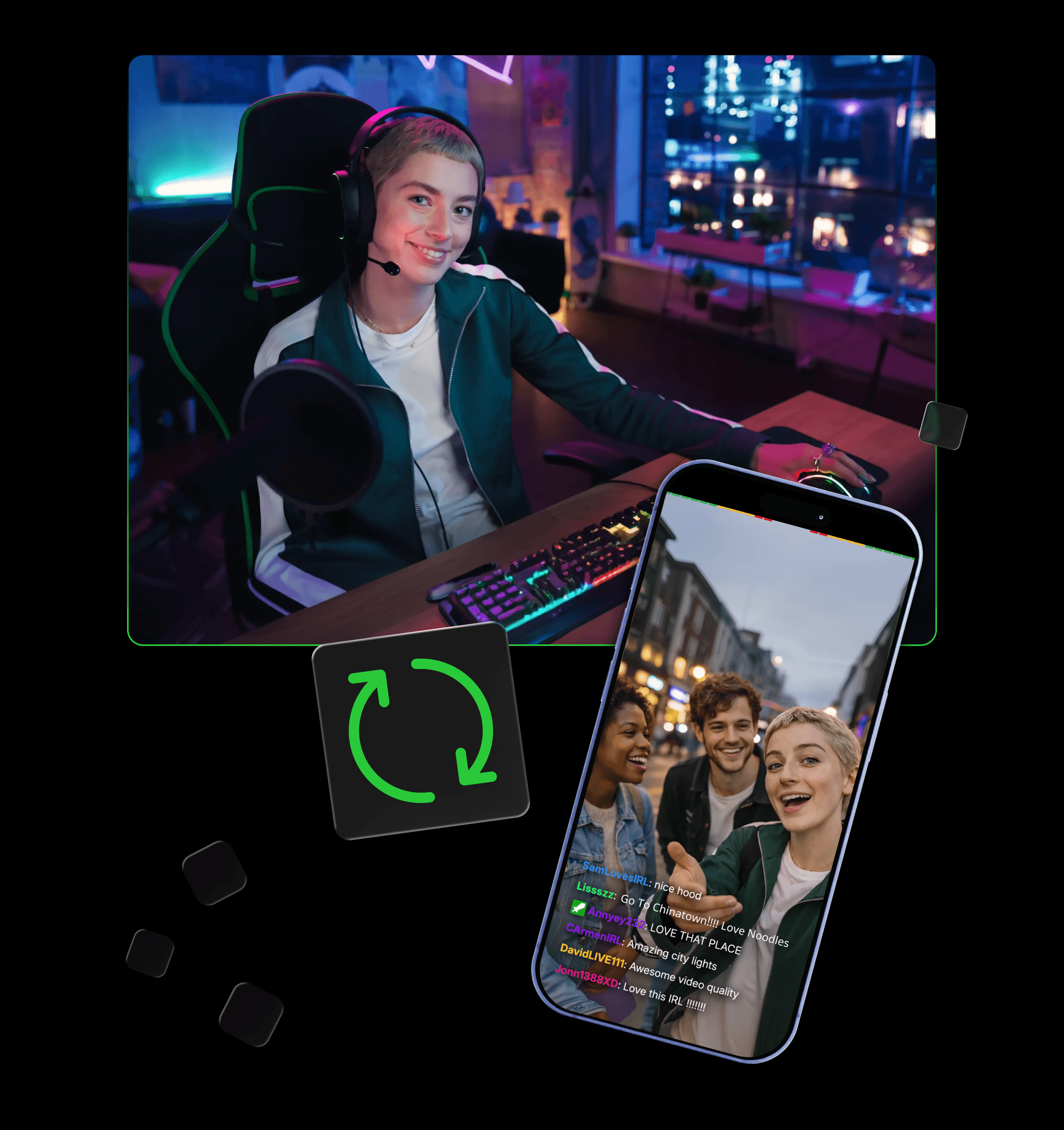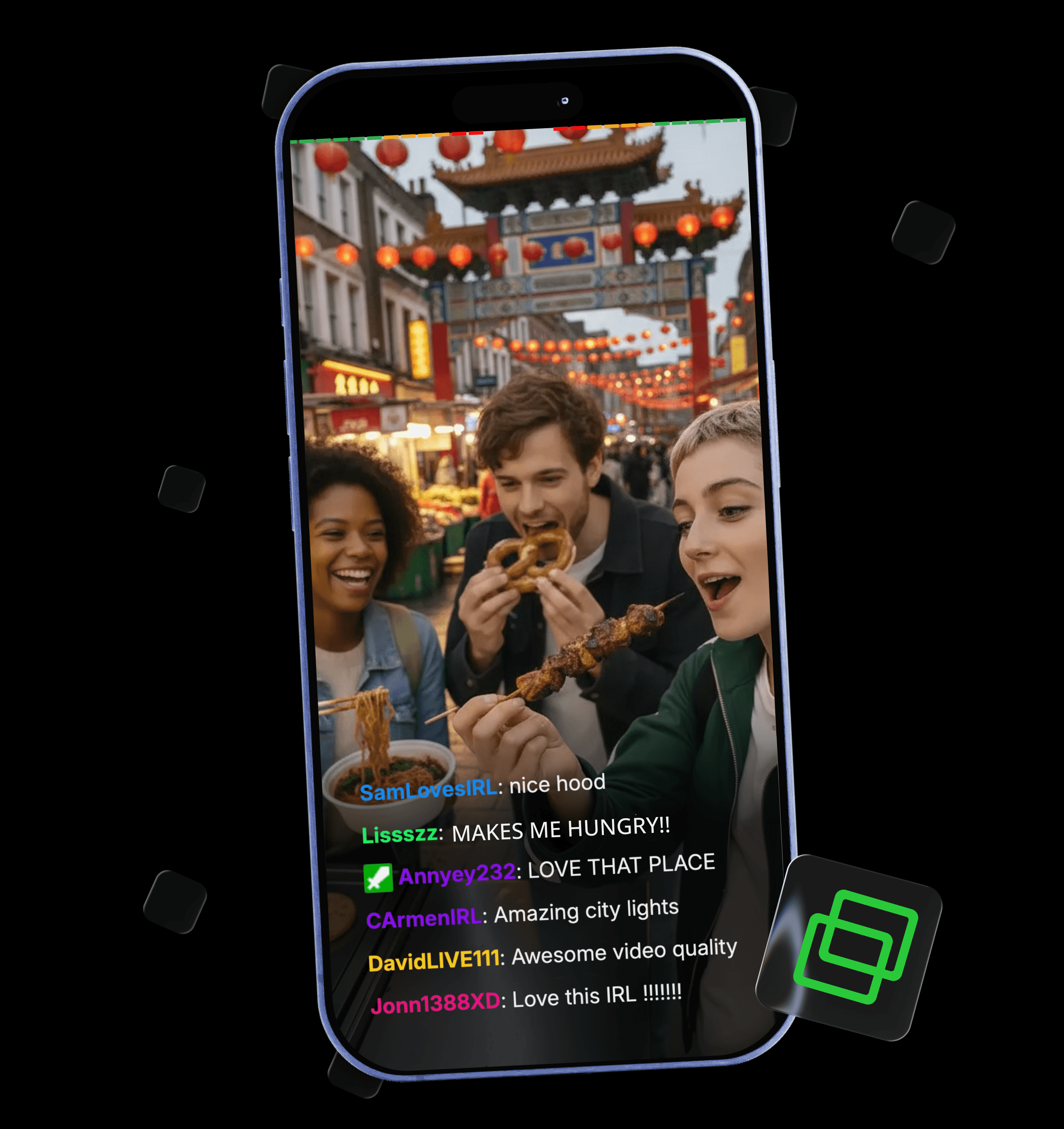 Go live to Twitch, YouTube, Kick, Tiktok, X, IRLToolKit, and hundreds more, all from your phone.